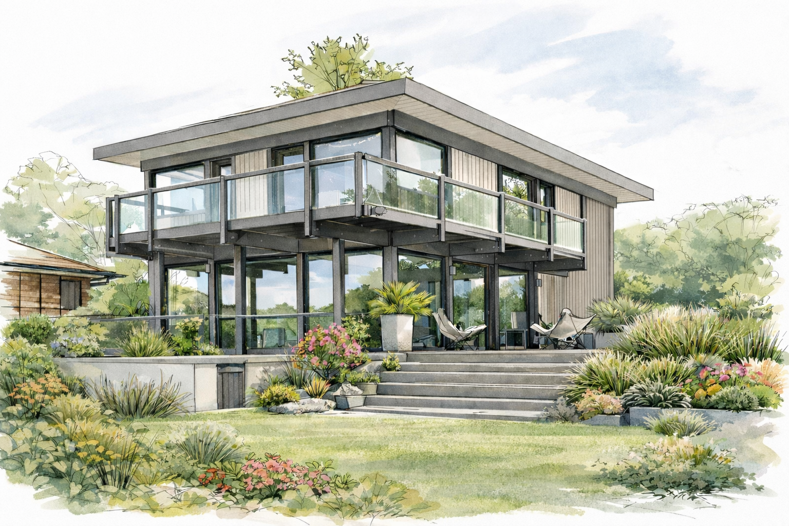This contemporary timber home of 150 sq m can be fully customised to suit your lifestyle. It features a spacious open-plan living area with a kitchen opening onto the lounge, leading directly out to the terrace and private garden. The layout includes four bedrooms including suites, a utility room and a double garage, all set on a beautiful south-facing, tree-lined plot of 1,553 sq m.