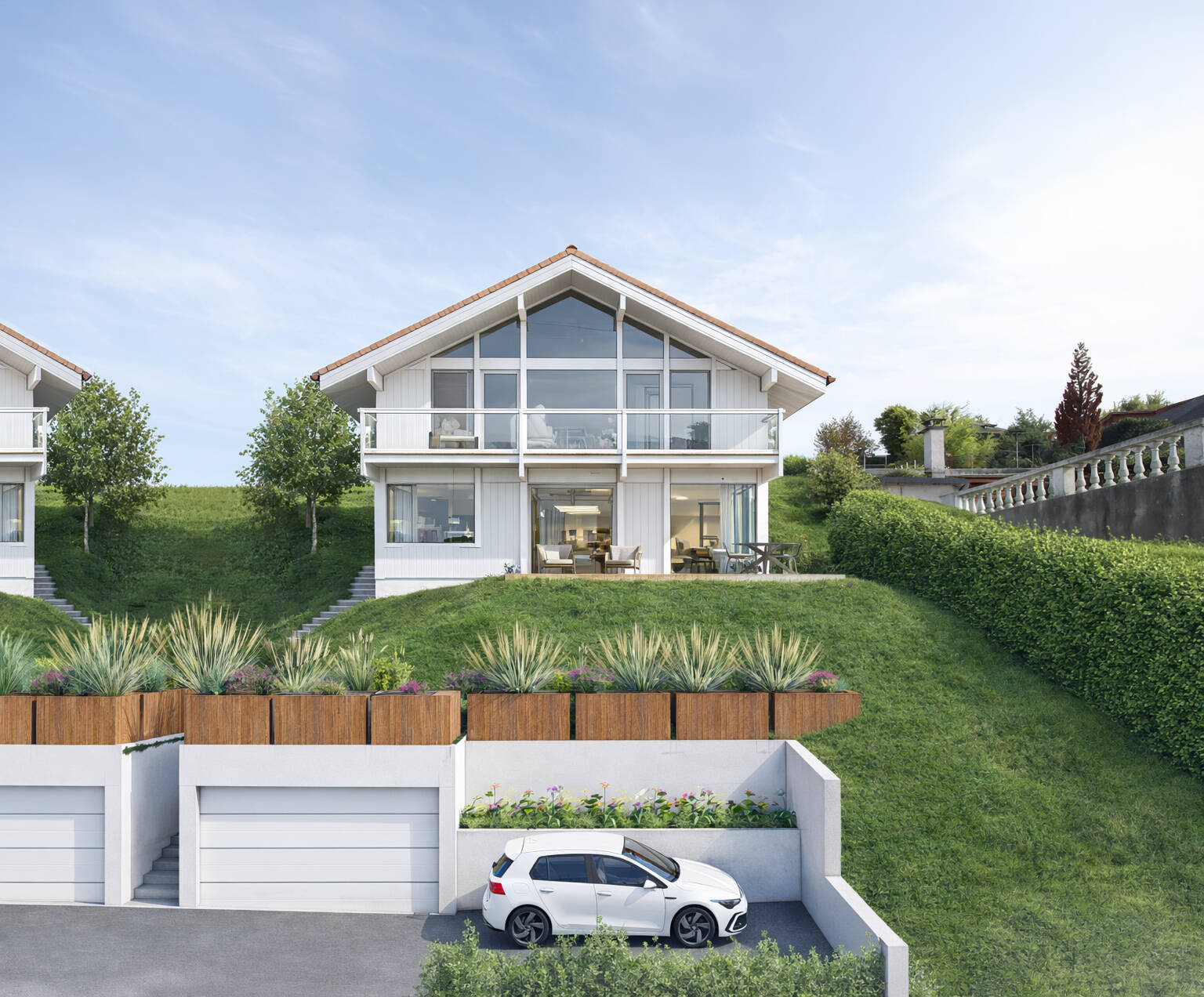 This 147 sq m contemporary timber home with annexes, to be built on a 778 sq m sloping plot, enjoys a rare location in downtown Aix-les-Bains with views over Lake Bourget and the surrounding mountains. It features a spacious open-plan living area, three bedrooms and suites, a multi-functional space and numerous additional spaces: double garage, convertible cellar, laundry room, and storage areas. An exceptional setting in a quiet and sought-after residential area, just 5 minutes from the motorway access to Annecy, Geneva, and Switzerland.