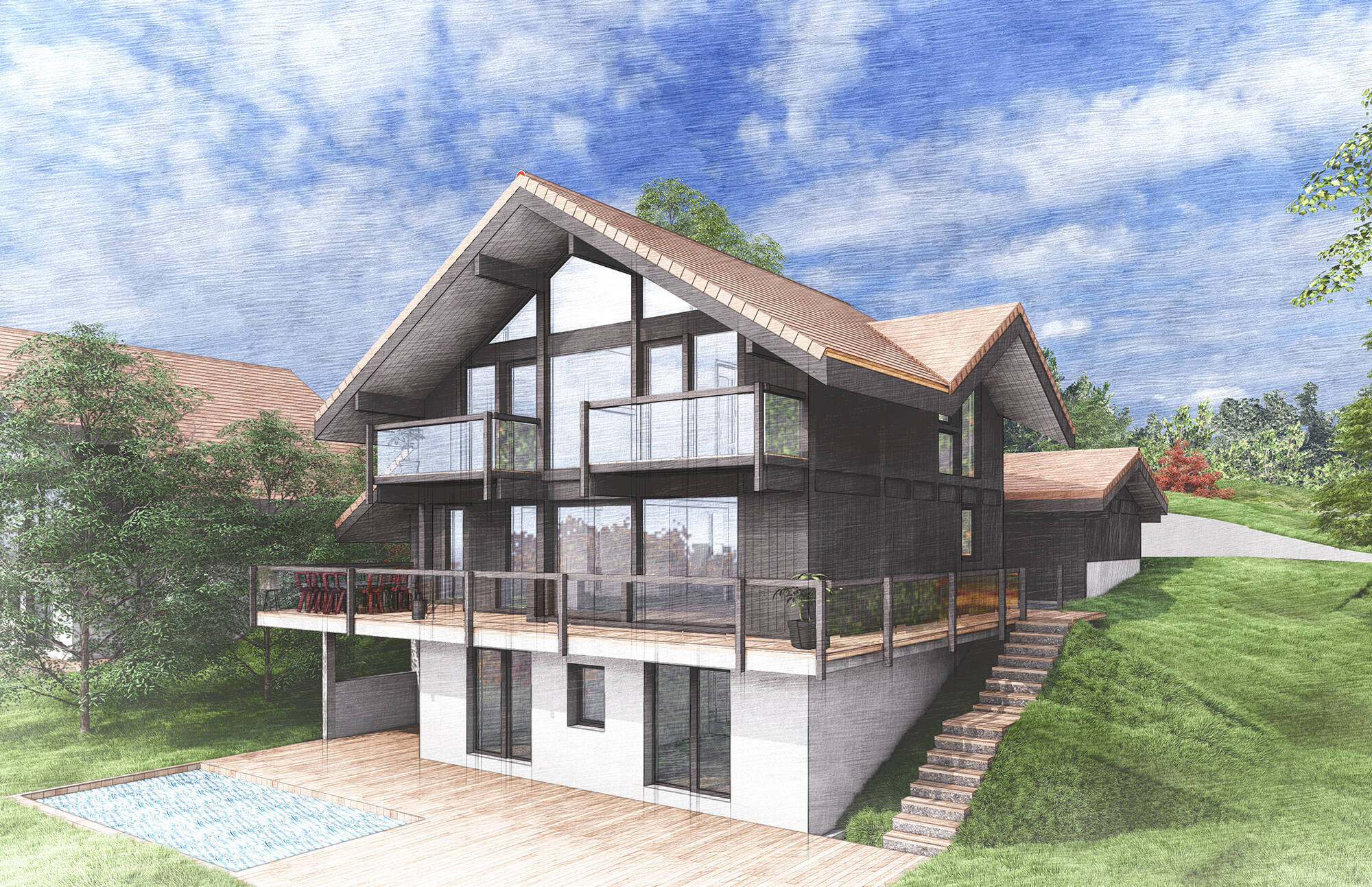 Off-plan sales new home: the indicated price includes the land, the turnkey house construction, kitchen and sauna, outdoor landscaping and pool, studies, and insurances. Notary fees (reduced rate) are not included. Non-contractual photos.