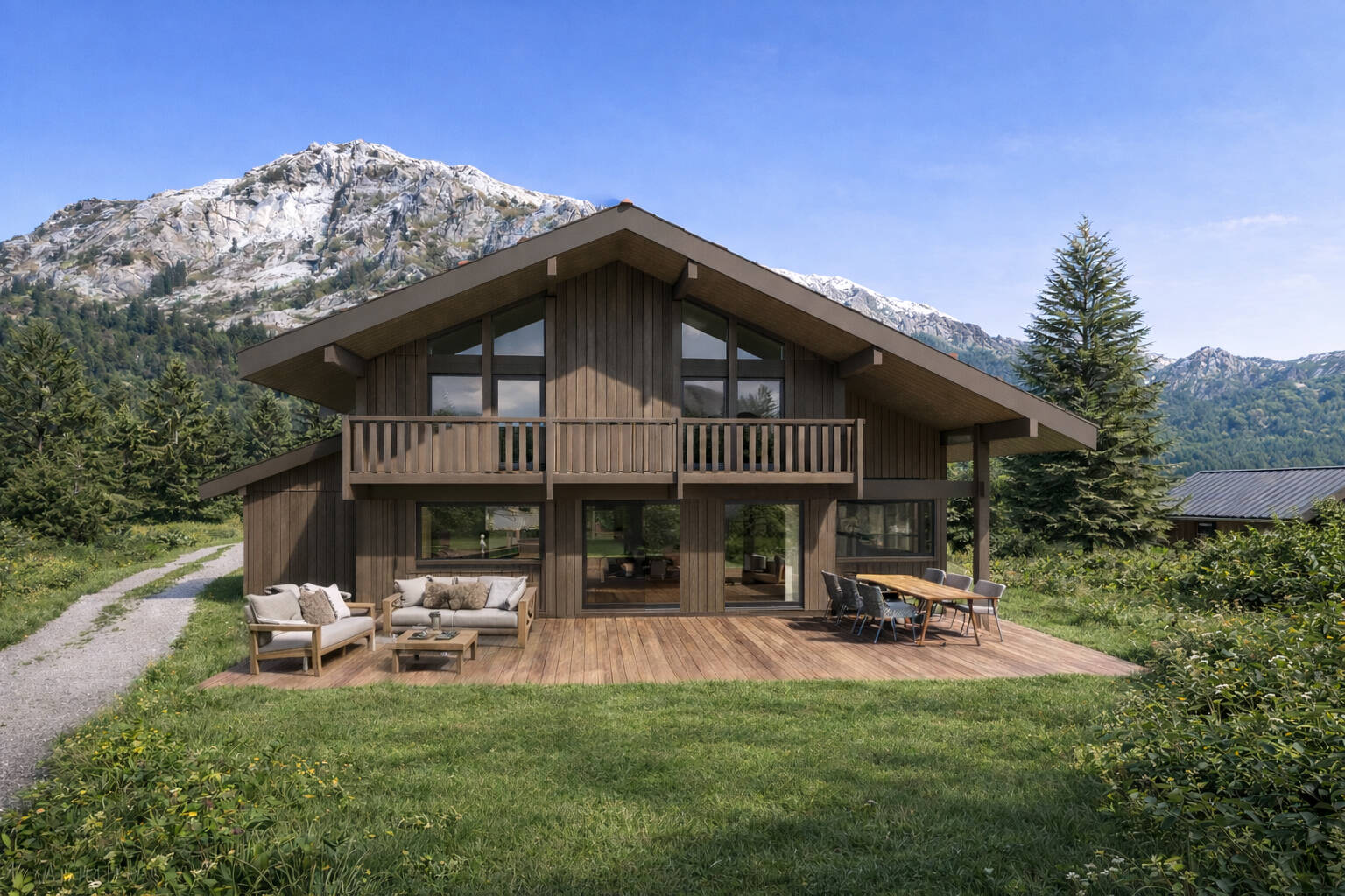 Ce chalet bois contemporain personnalisable de 160 m², implanté sur un magnifique terrain plat de 1 004 m² offre un vaste espace de vie baigné de lumière, une terrasse et un jardin, 4 chambres & suites ainsi qu'un garage et un abri voiture. Situé dans un secteur résidentiel recherché et rare près du centre du Chinaillon, à moins d’un kilomètre du front de neige et du télésiège du Charmieux, ce bien offre un accès immédiat aux pistes et au village tout en conservant calme et intimité.